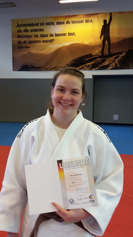 Wieder einmal haben sich Mühe, Ehrgeiz und Engagement gelohnt - auch Julia Winkler ist nun Trägerin des 1. Dan.